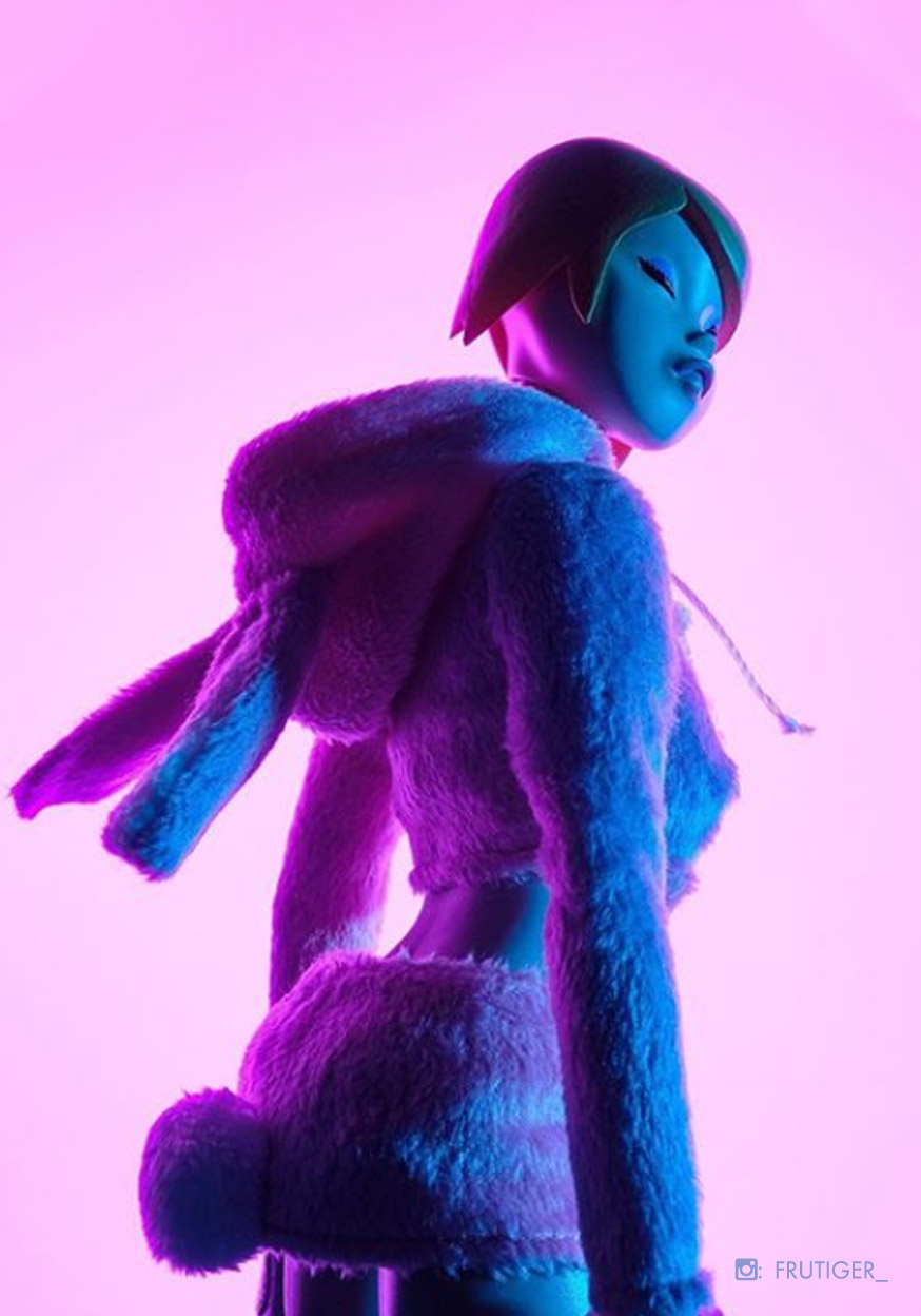 | What's In the Box | Furry pink 2-piece bunny suit, classic Junko head |